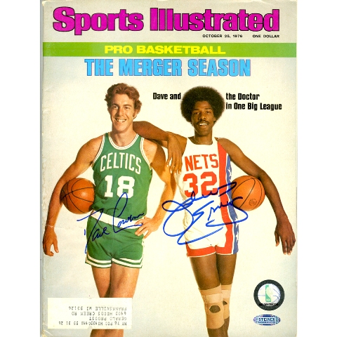 Dave CowensJulius Erving Dual Signed 102576 Sports Illustrated Magazine - Steiner Sports specializes in helping companies use the power of sports to grow their business. The company has spent over 25 years building relationships with more than 2000 athletes national relationships with the major sports leagues and partnerships with the best teams in sports. These relationships are the foundation for the unique sports experiences they provide. Steiner Sports is also the leading producer of authentic hand-signed collectibles. This Sports Illustrated magazine has been personally hand-signed by Basketball Hall of Famers Dave Cowens and Julius Erving. Issued on October 25th 1976100% Guaranteed AuthenticIncludes Steiner Sports Certificate of AuthenticityFeatures Tamper-Evident Steiner Hologram Specifications