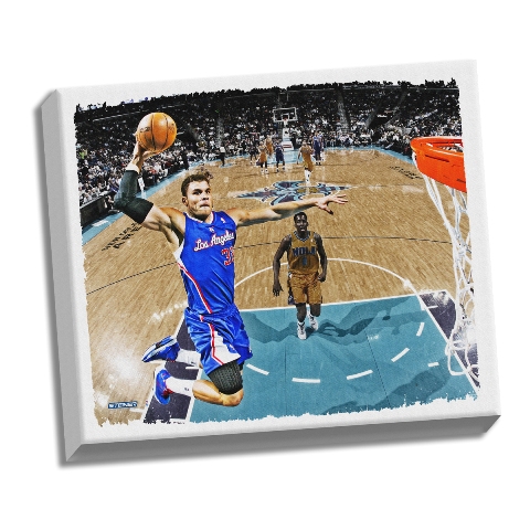 Blake Griffin Dunk Stretched 22 x 26 Canvas - This Breathtaking Stretched Canvas of Blake Griffin Dunking is the perfect way to take your man cave to the next level. This piece is hand-created exclusively at Steiner Sports' Headquarters in New Rochelle NY and is professionally printed on an extremely high quality 20-mil thick mid-gloss canvas. The canvas will arrive pre-stretched and ready to hang on your wall. This is a must have for any true sports collector who is looking for a classier alternative for their home. Specifications
