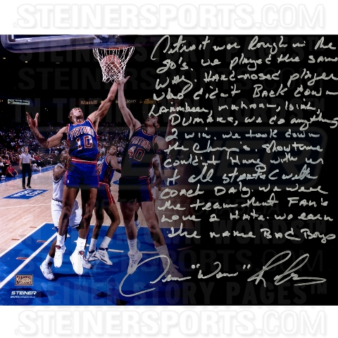 Dennis Rodman Pistons Signed 16x20 Story Photo - This incredible story was hand-written by Dennis Rodman and explains his thoughts and insights on the bad boys. This photograph measures 16x20 and is a Steiner Sports exclusive item. This is a one-of-a- kind piece and is a perfect addition for any sports fan. This Dennis Rodman autograph is Guaranteed Authentic by Steiner Sports and include a Steiner Sports Certificate of Authenticity and an accompanying tamper-proof Steiner Hologram. The Steiner Seal Means It's Real. Specifications
